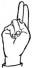 На ћирилици написано КРИСТИЈАН КЛЕМЕНОВИЋ састоји се из 19 слова [?]. Исписано ћириличном једноручном азбуком за глувонеме: